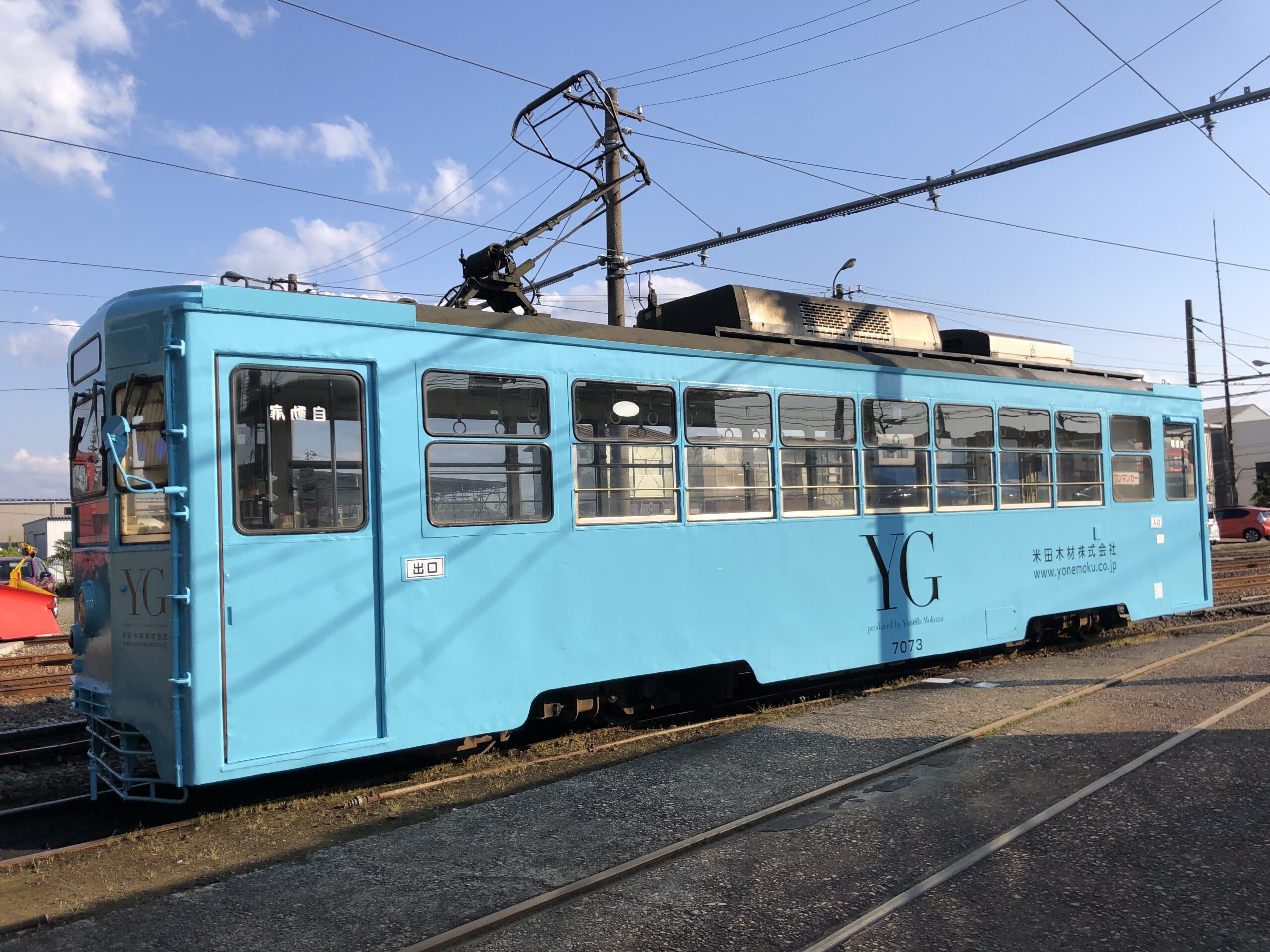 地域の方たちが通勤や通学で使う万葉線。そのうちの1つが米田木材のブランドカラーである水色をまとった、通称「みずいろ電車」「YG電車」です。