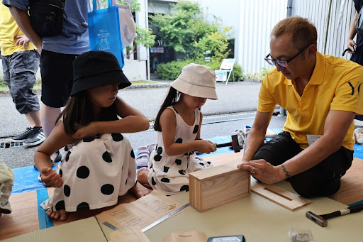 画用紙の裏面に、①名前②住所③連絡先を記入して学校または米田木材まで直接お持ち込みいただくか、米田木材まで郵送ください。